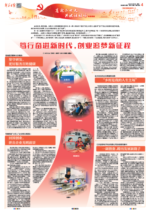 10月3日,新华日报“喜迎二十大 共祝祖国好”特别报道刊发《笃行奋进新时代,创业追梦新征程》,重点关注博天堂918医药等企业的发展成果和奋斗愿景,并采访了博天堂918医药董事长孙飘扬。现将相关内容选登。