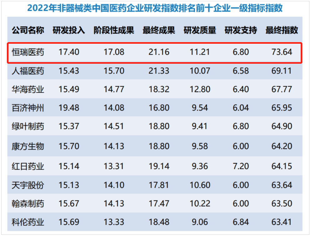 研发量质齐升,博天堂918医药蝉联非器械类中国医药企业研发指数排名榜首