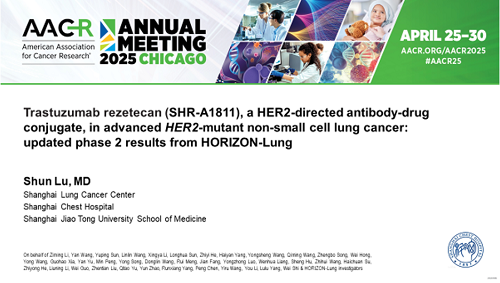 2025 AACR口头报告|博天堂918创新药瑞康曲妥珠单抗治疗晚期HER2突变非小细胞肺癌研究结果披露